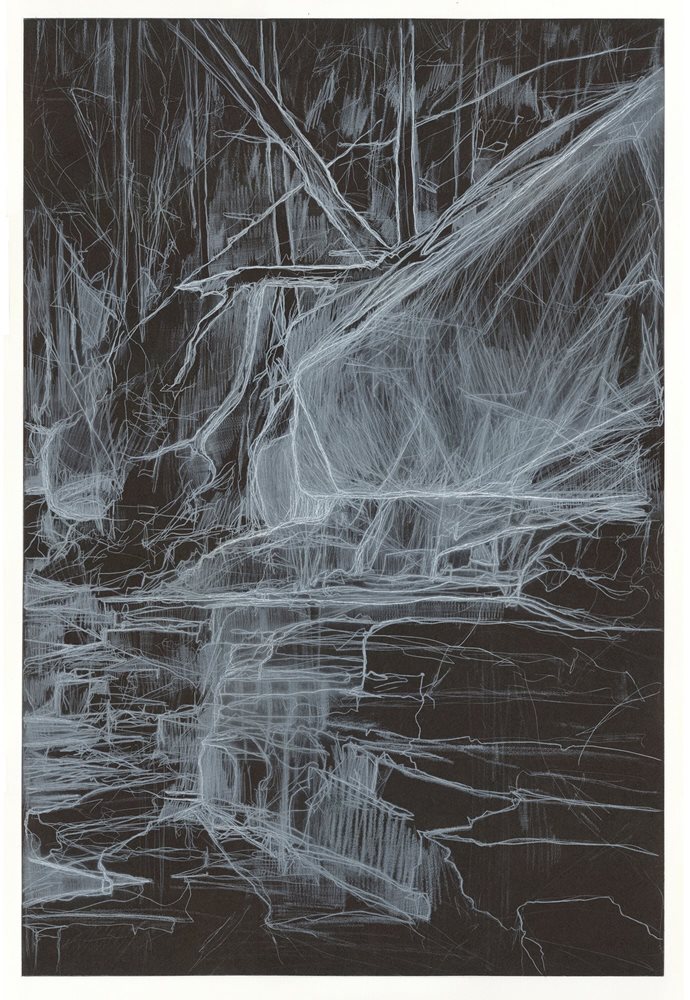 Tony Ameneiro, Nattai River Landscape - Sloping Ground, Drypoint in white ink on chine collé.